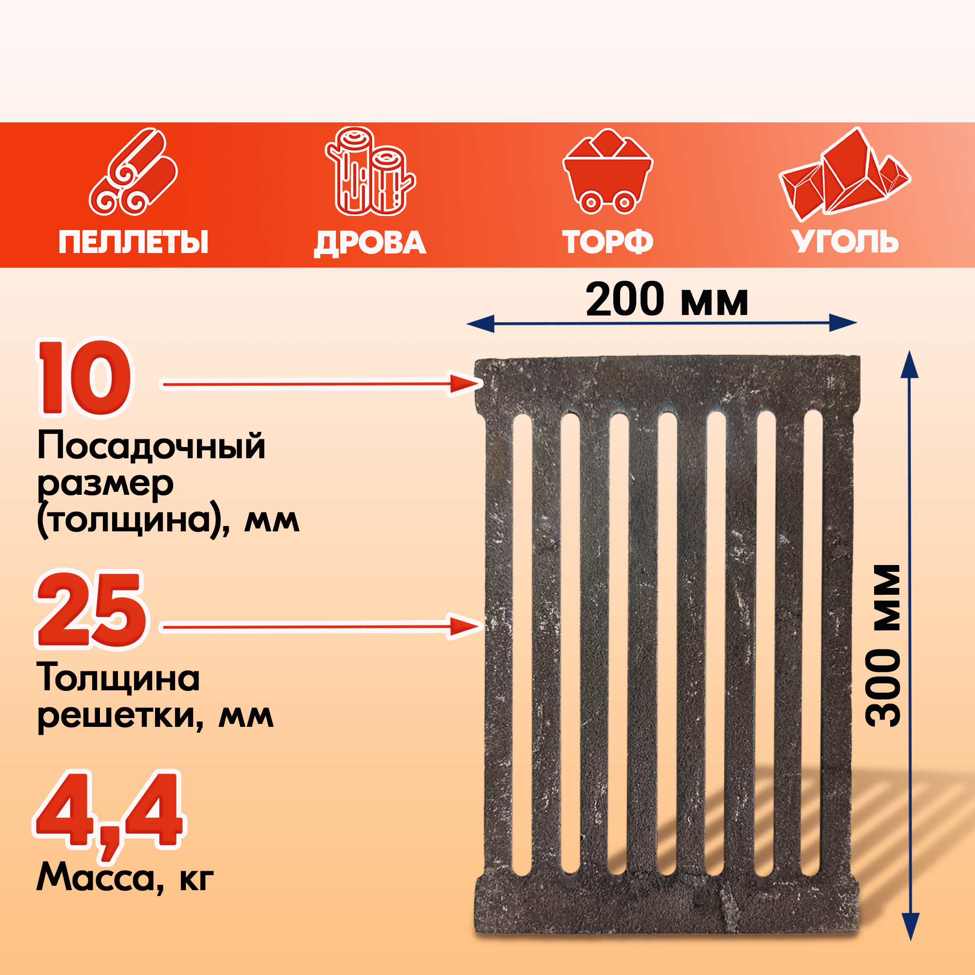 Обращаем внимание, что колосниковая решетка из чугуна РУ-7 — это 1/2 колосниковой решетки для угля РУ-2 и предназначена для укладки с решеткой РУ-2 в увеличенные по ширине топки печей размером 300х300 мм и больше.