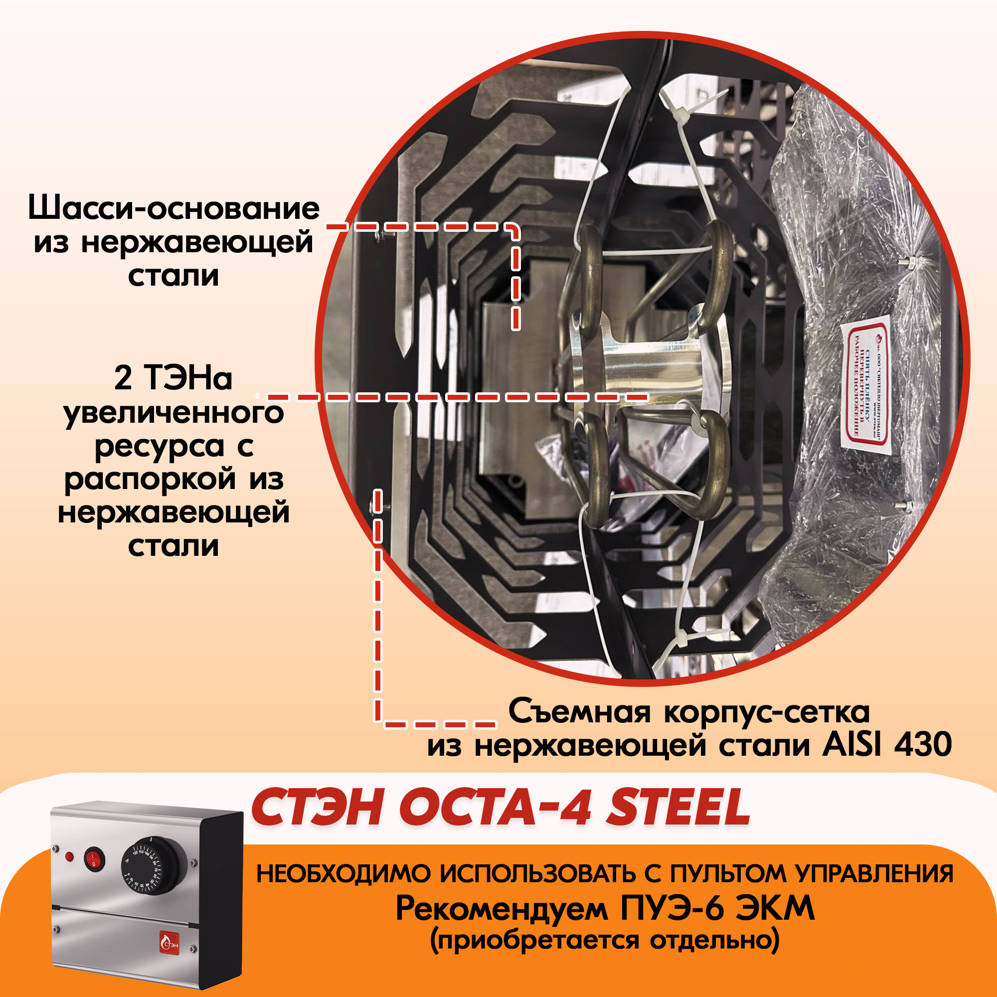 Электрическая каменка СТЭН ЭКМ 4 Octa steel в Благовещенске | Доставка по России