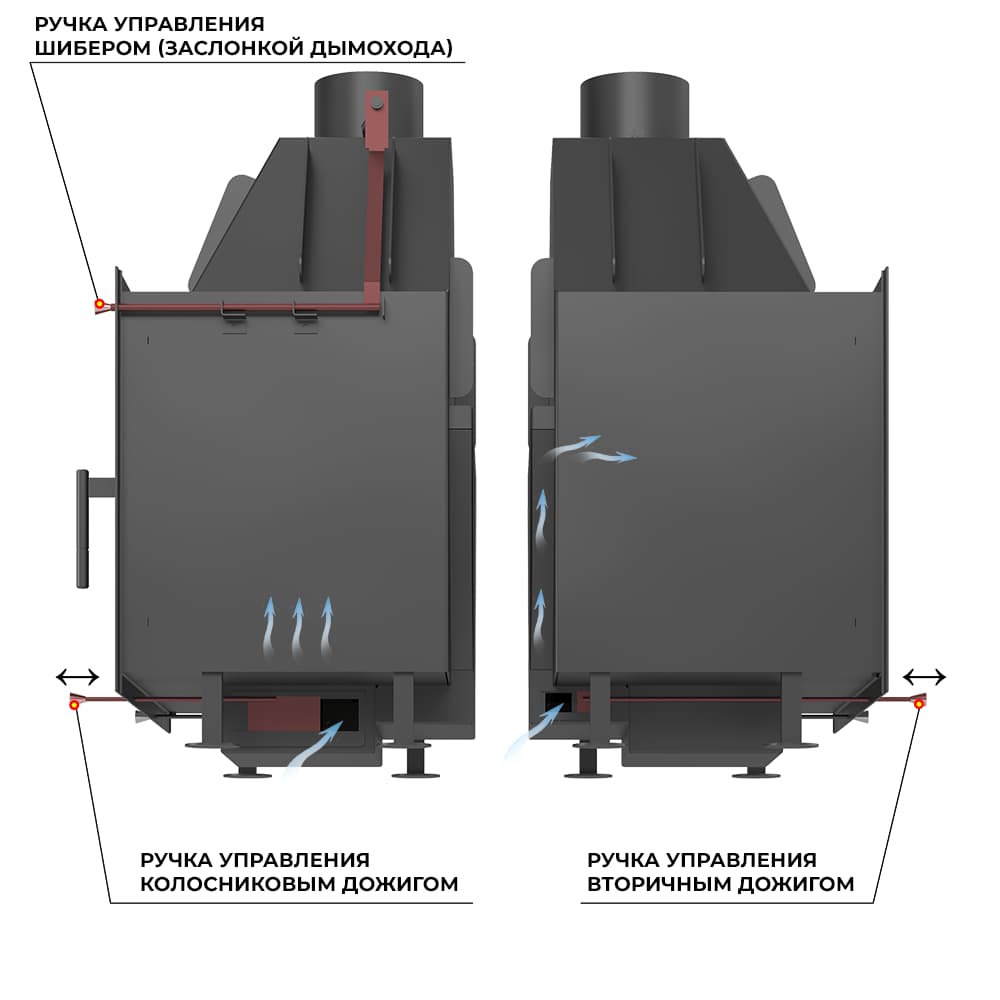 Тоннель, позволяющий использовать дрова длиной до 50 см.