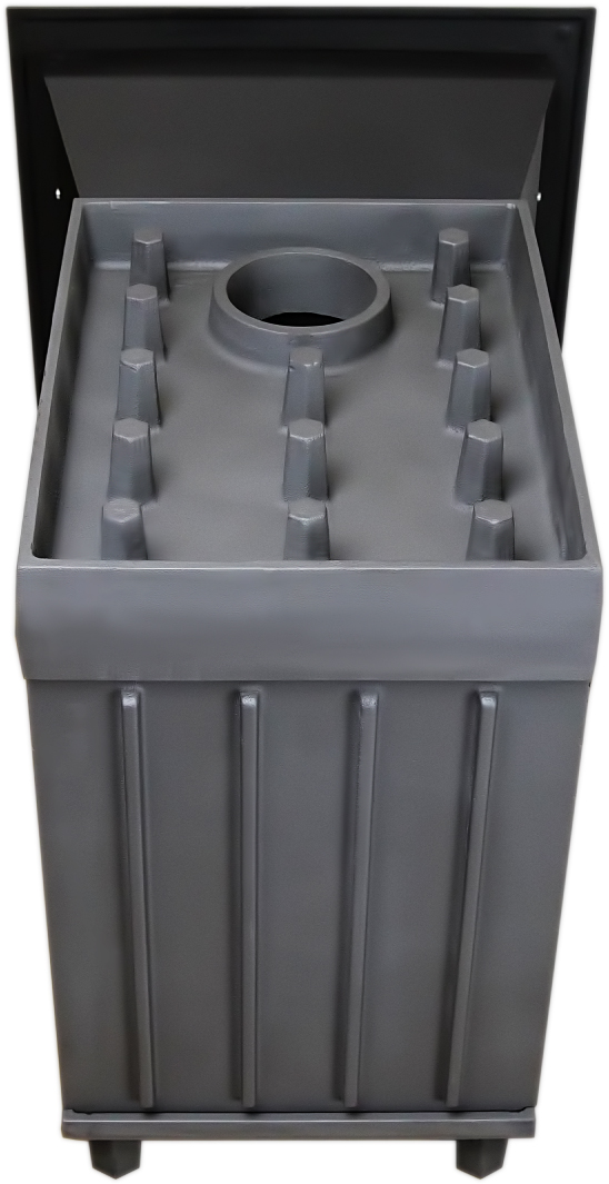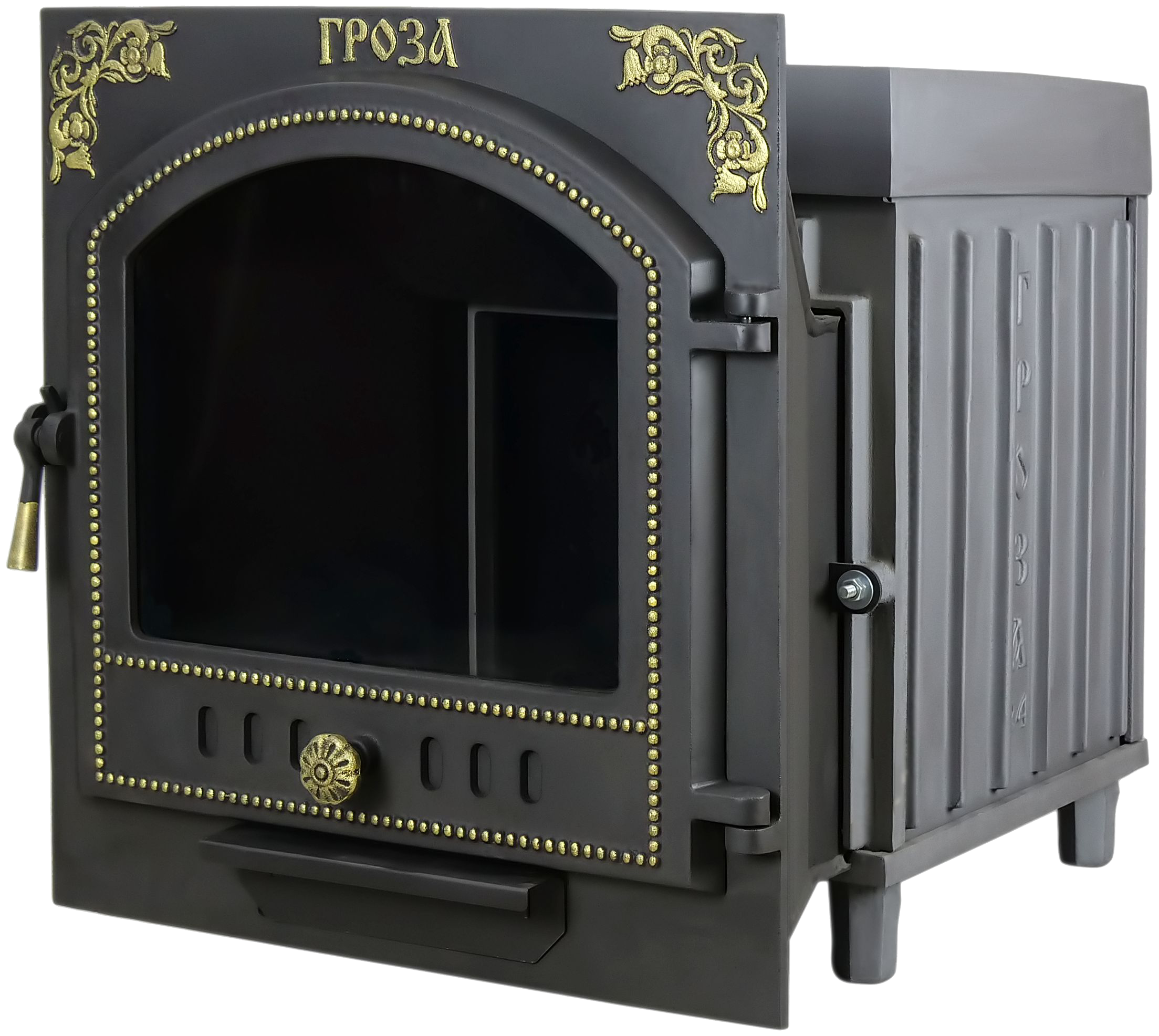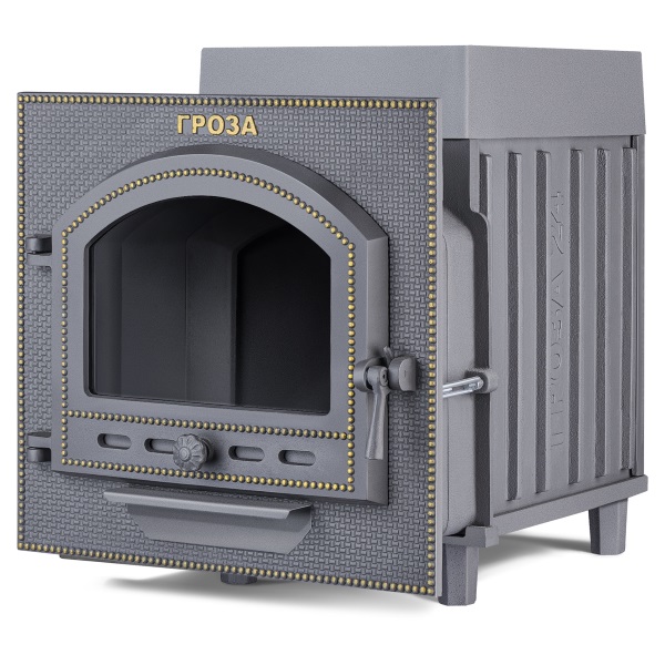 Чугунные банные печи ТМ «Гроза» — это современные печи, рассчитанные на малые и средние размеры парных. Печь имеет прочную сборную конструкцию, без резьбовых и сварных соединений, детали выполнены из легированного чугуна. Топка печей «Гроза» состоит из двух камер, разделенных пламегасителем. Радиаторные выступы каменки, направленные вглубь топки, увеличивают площадь контакта огня с каменкой и эффективность теплосъема. Для увеличения площади поверхности нагрева камней каменка снаружи оборудована чугунными шипами, направленными вверх. Между шипами укладываются банные камни или дополнительные чугунные заклады, такие как ядра и чугунные шишки. Сами чугунные шипы также являются частью заряда для лучшего испарения воды.