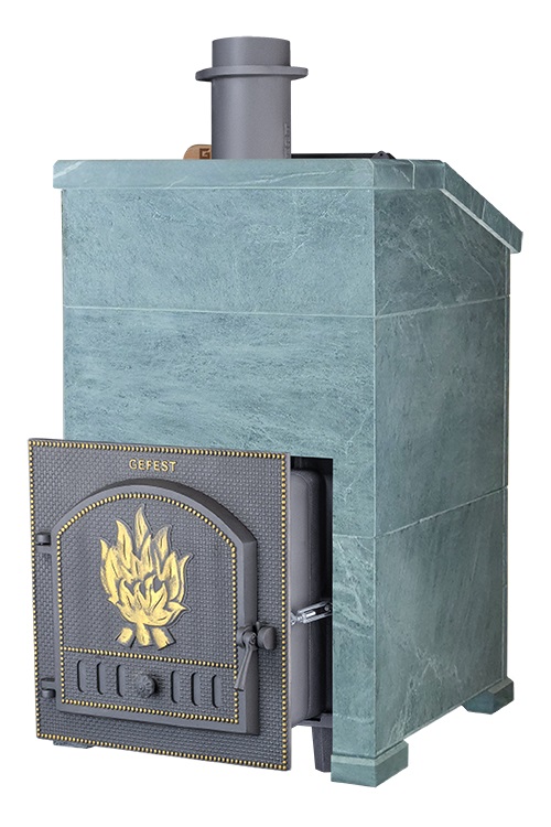 угунные банные печи ГЕФЕСТ изготовлены из легированного чугуна с толщиной деталей до 40 мм. Уникальная конструкция печей делает их одними из самых надежных. Отличие модели «ГЕФЕСТ ЗК» от других серий ГЕФЕСТ — в усиленной каменке большой массы, с единым углублением внутрь топки для дополнительной укладки чугунного заряда. Теплосъемные шипы со стороны горения пламени в разы увеличивают площадь соприкосновения огня с каменкой и ускоряют передачу тепла, а также способствуют лучшему дожигу. Эти усовершенствования значительно повышают мощность парообразования печи «ГЕФЕСТ-ЗК» и выдают большее количество пара при непрерывной поддаче воды. Заряд в такой каменке нагревается свыше 500 ⁰С — только с такой температурой получается легкий мелкодисперсный пар, что крайне важно для создания в парной режима «Русская баня». Конвекционные ребра на боковых стенках увеличивают теплопередачу от горящих дров к воздуху в парном помещении. За счет этого печь, несмотря на значительную толщину и массу, быстро выводит парную в требуемый режим.