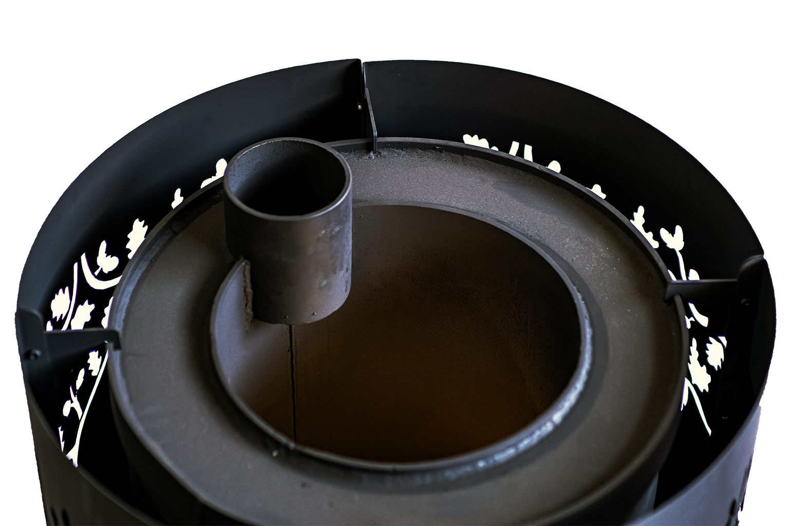 √ Специальная винтовая система дымохода, позволяющая равномерно прогреть камни, находящиеся в закрытой каменке, а также эффективно обогреть парильное и смежные помещения;