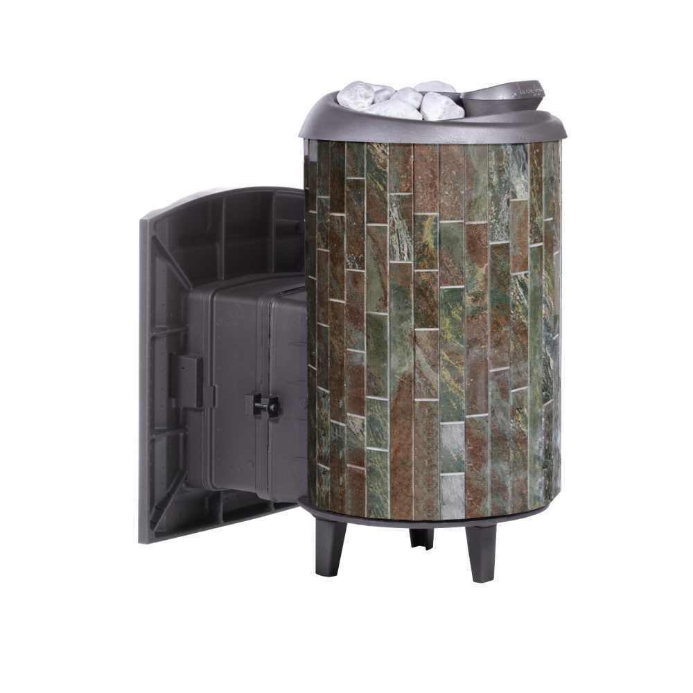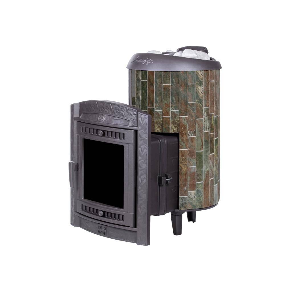 Практичная и компактная модель. Ламели из жадеита по периметру внешней каменки не только обладают хорошими теплонакопительными свойствами, но и придают печи оригинальный внешний вид.