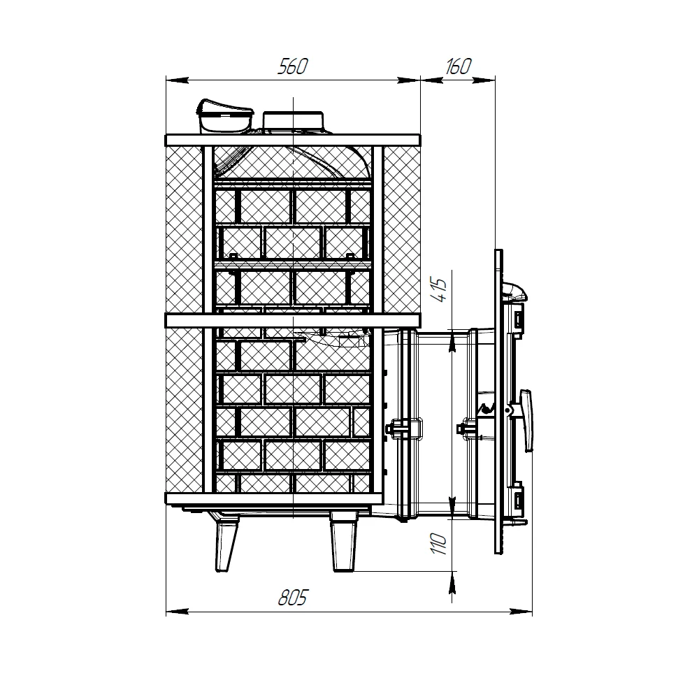 Цельнолитая конструкция топки, без швов гарантирует превосходную прочность.