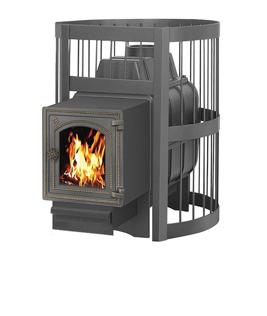 Банная чугунная печь Легенда Стандарт 22 (ДТ-4С) укомплектована чугунной не герметичной дверцей Везувий ДТ-4С с жаропрочным стеклом «SHOT ROBAX».  Конвекционно-вентилируемый кожух "Стандарт" изготовлен из металлического прутка диаметром 6мм покрашенной черной термостойкой краской.