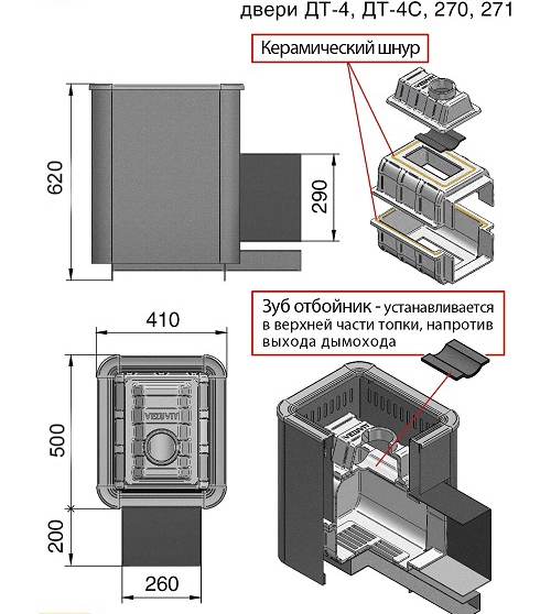 • комплектация чугунной герметичной дверцей "Везувий ДТ-4".