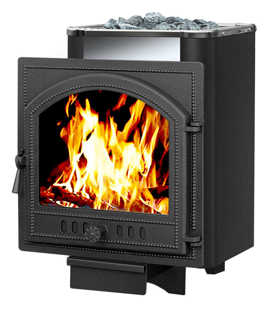 Банная чугунная печь Сенсация 16 (205) укомплектована чугунной герметичной дверцей Везувий 205 с жаропрочным стеклом «SCHOTT ROBAX».