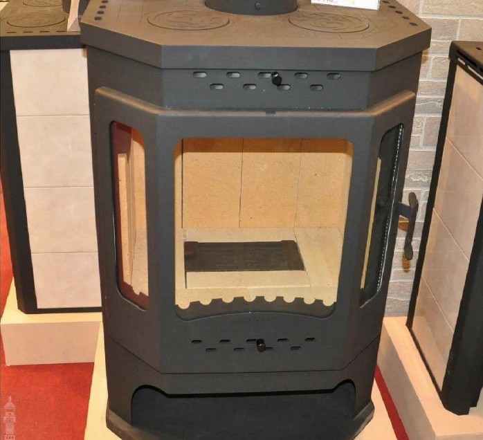 Обогрев этой печи часто называют "пушечным" за скорость нагрева. Через 15 минут после растопки вы ощущаете приятное тепло, которое разливается по дому. КПД у печи высокий - 80%.
