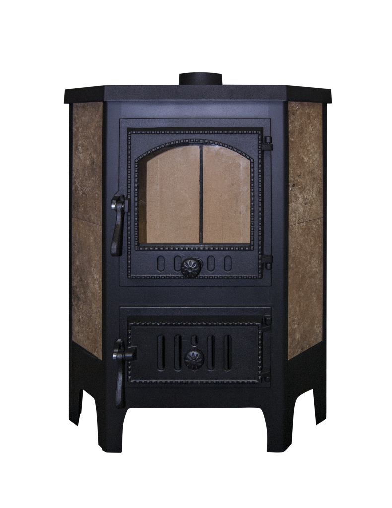 Печь-камин ЭкоКамин Бавария угловая чугун с плитой