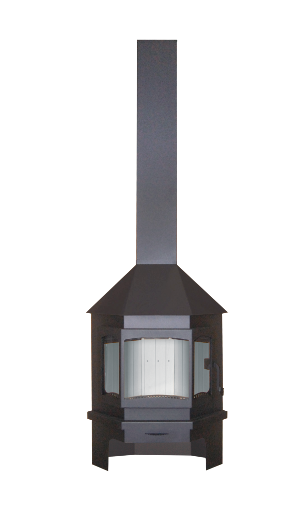 Печь-камин Мюнхен производится из стали с финишной покраской в черный цвет либо цвет графит.