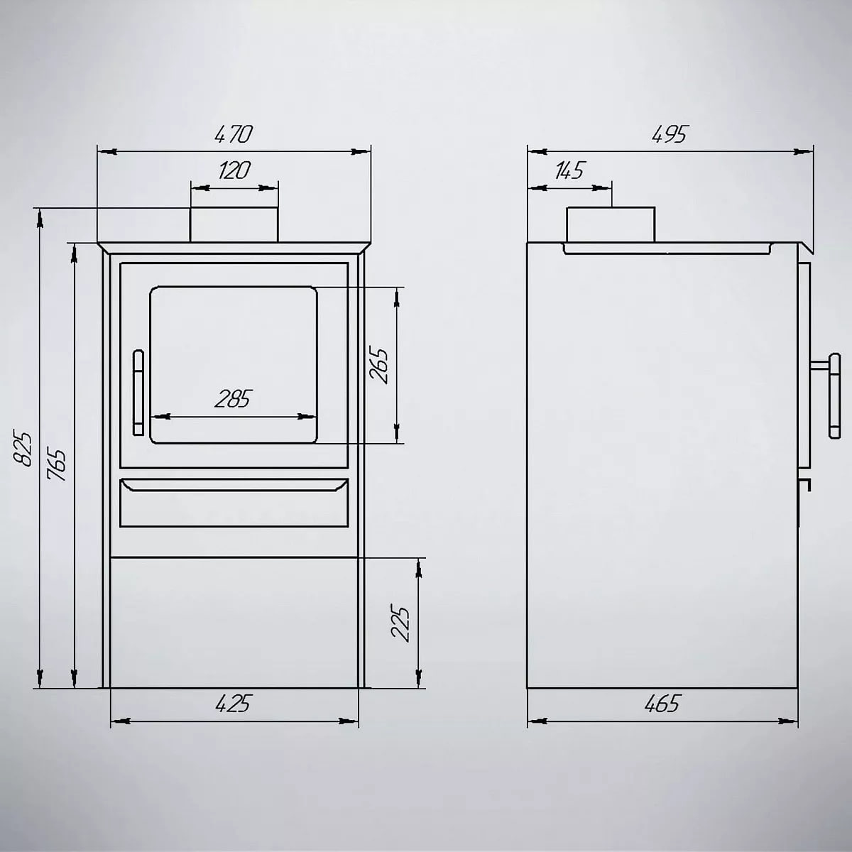 Боковые стенки металлической печи на дровах представляют собой конвекторы.