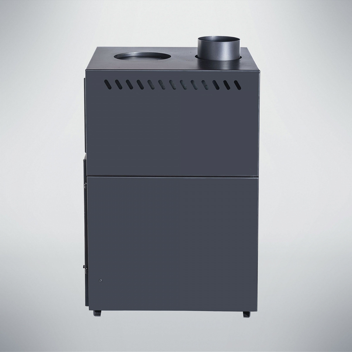 Диаметр патрубка для дымохода составляет 150 мм, подключение системы отвода дыма – верхнее.