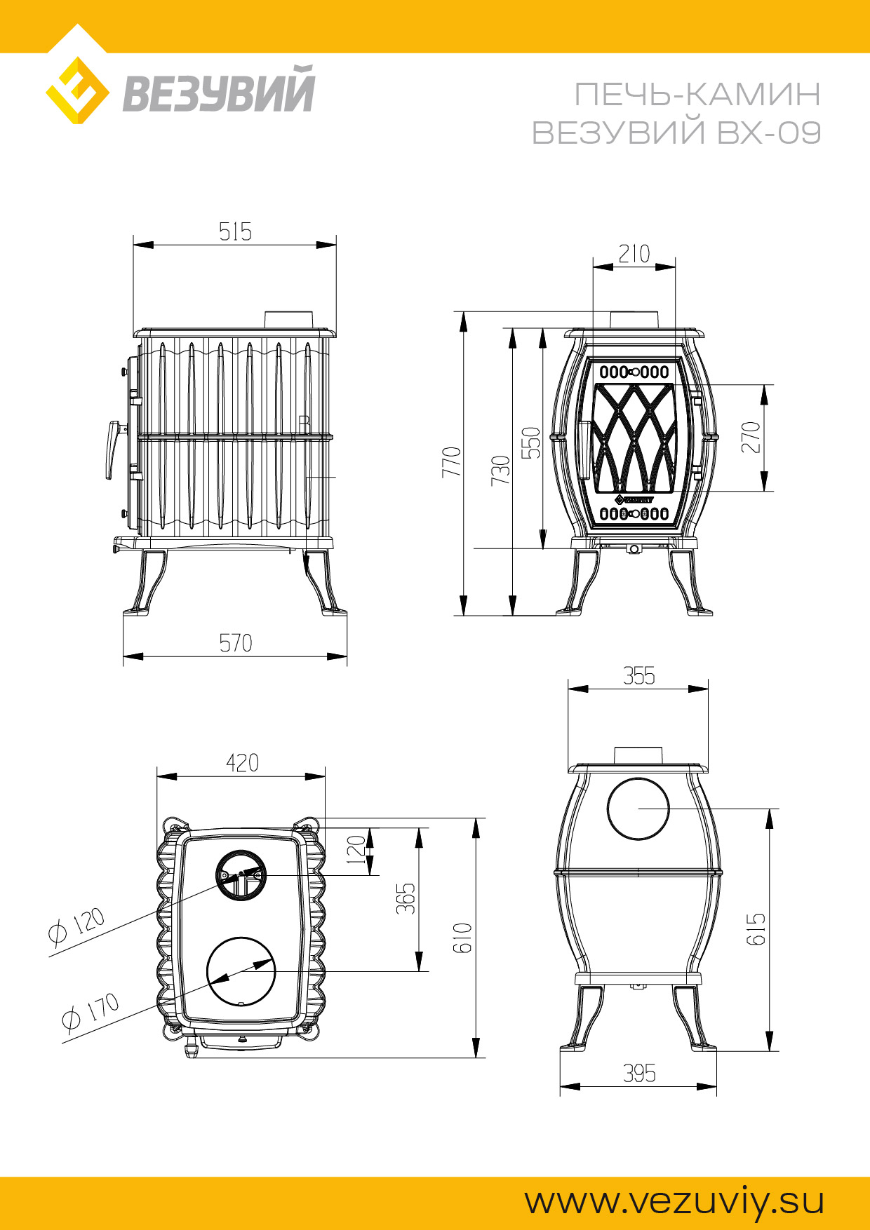 Печь-камин Везувий BX-09 "Антрацит" (чугунный)