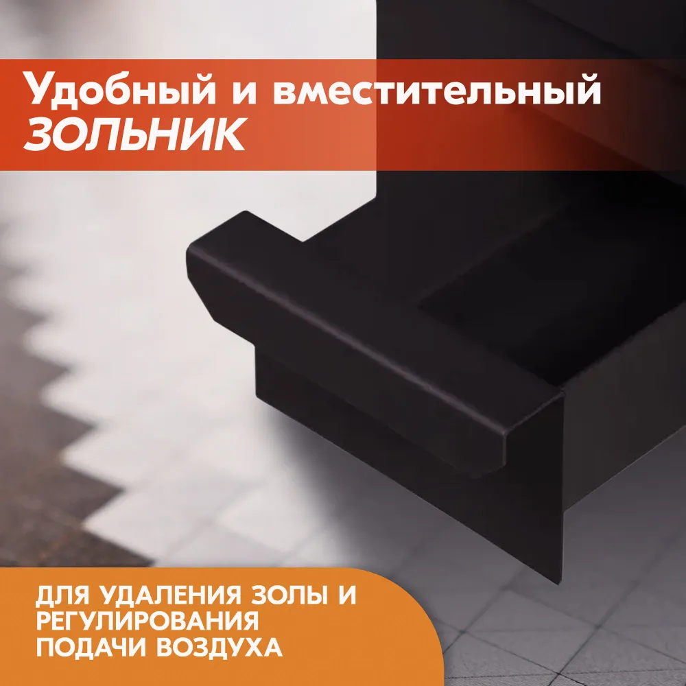 Глубокая топка вмещает дрова длиной до 47 см.