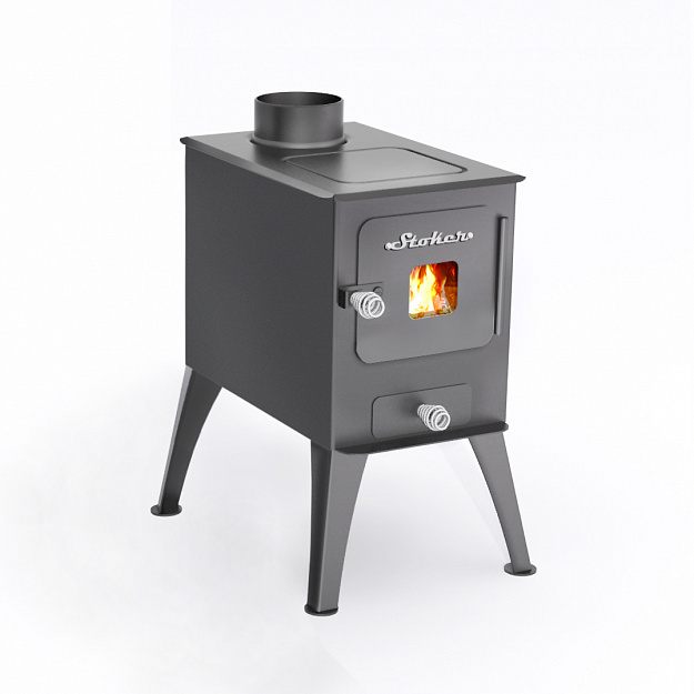 Малогабаритная отопительная печь Stoker "Садовая 50" со стальной варочной поверхностью и дверцей с жаропрочным стеклом.