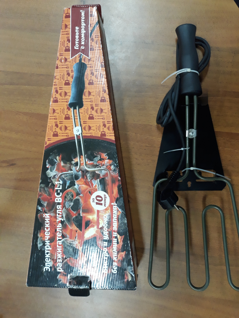 Средство для розжига угля в мангале, гриле и т.д.  Позволяет в течение десяти минут разжечь угли в Вашем мангале. Вам не нужно будет тратить свое время на розжиг углей, или аполивать их химическими средствами розжига.  Длина кабеля устройства 1,5 м.