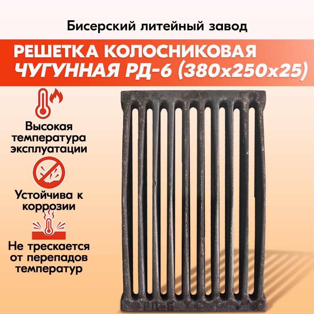 Решетка колосниковая РД-6 (380х250) для печи, правильные колосники для котлов