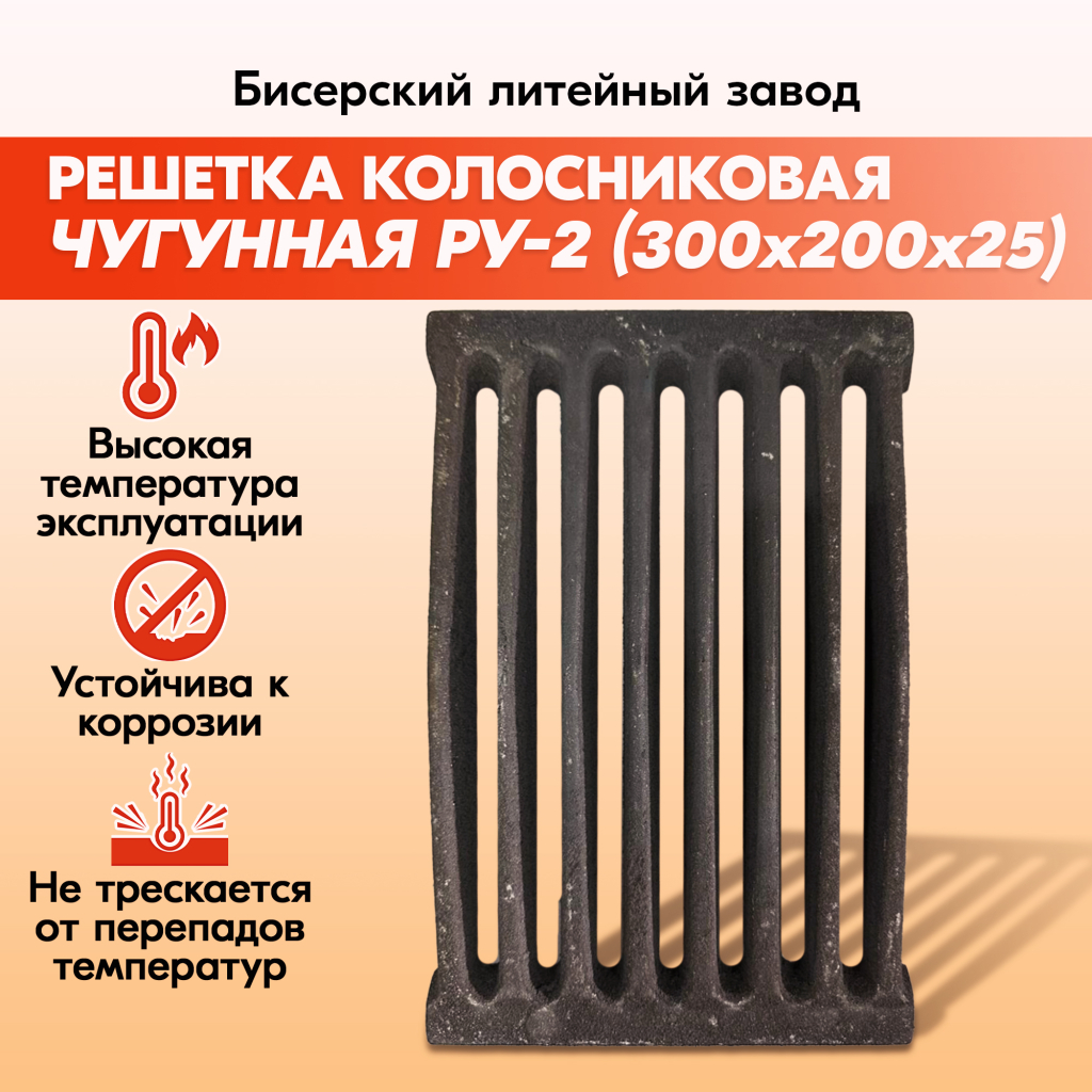 Решетка колосниковая РУ-2 (300х200) чугунная для печи и котла,правильные колосники для печки и котлов, литье для печи