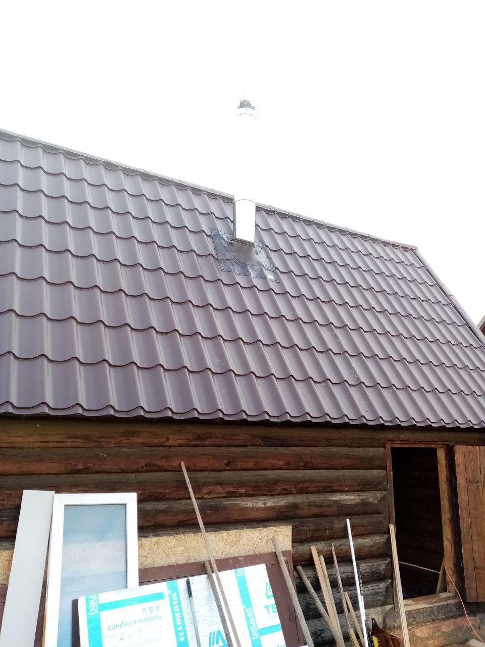 Монтаж банной печи Атмосфера с кирпичным порталом и дымоходом